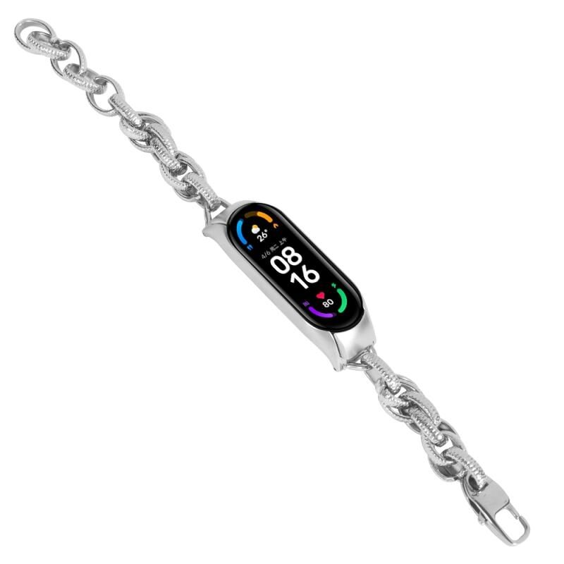 Για Xiaomi Mi Band 7 Κυματιστή Αλυσίδα Περιστροφής Μεταλλικό Λουράκι Ρολογιού (Ασημί)