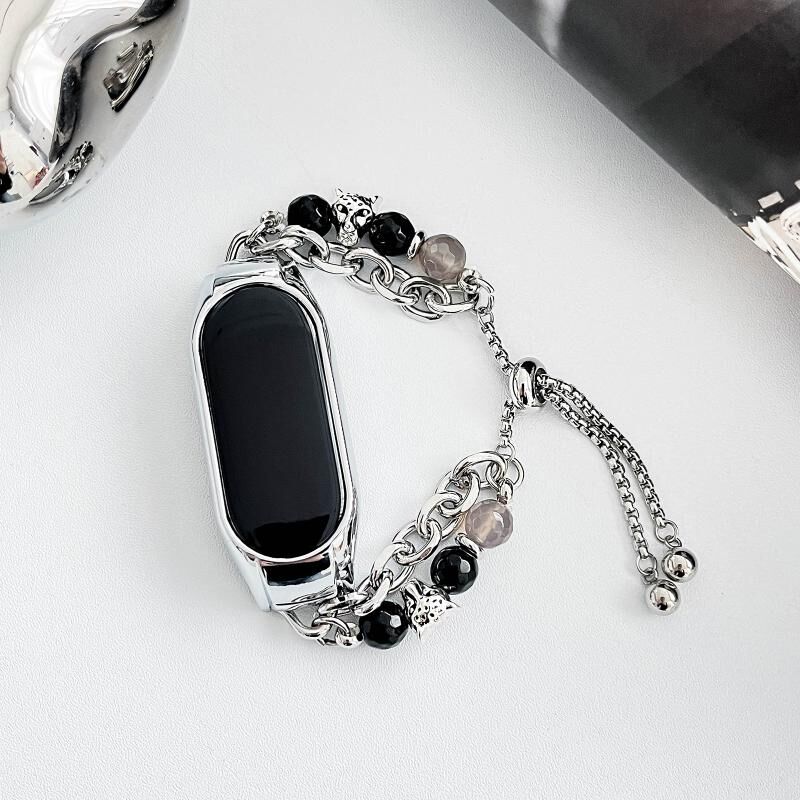 Για Xiaomi Mi Band 7 Κρυστάλλινη χάντρα με χάντρες Onyx Watch Band (Silver+Agate Bead)