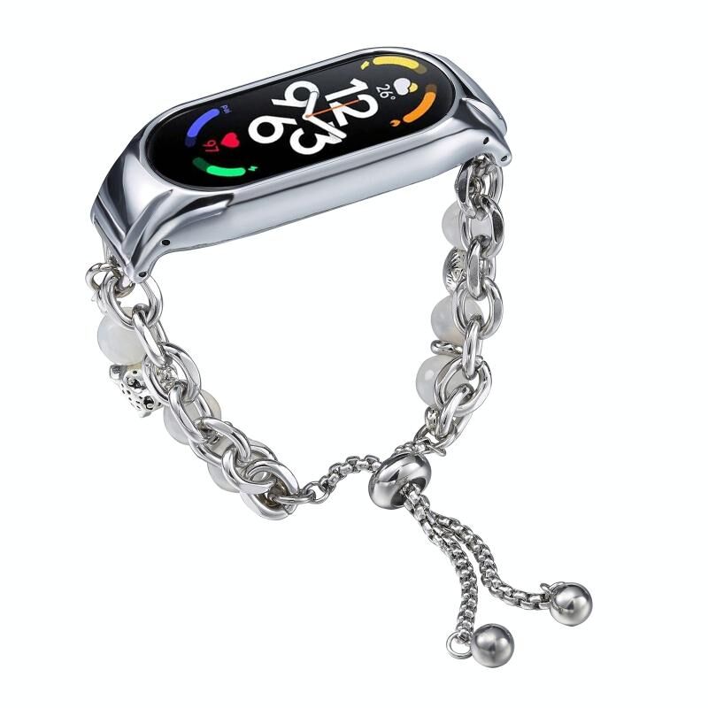 Για Xiaomi Mi Band 7 Κρυστάλλινη ζώνη ρολογιού με χάντρες από όνυχα (ασημί + λεοπάρδαλη)