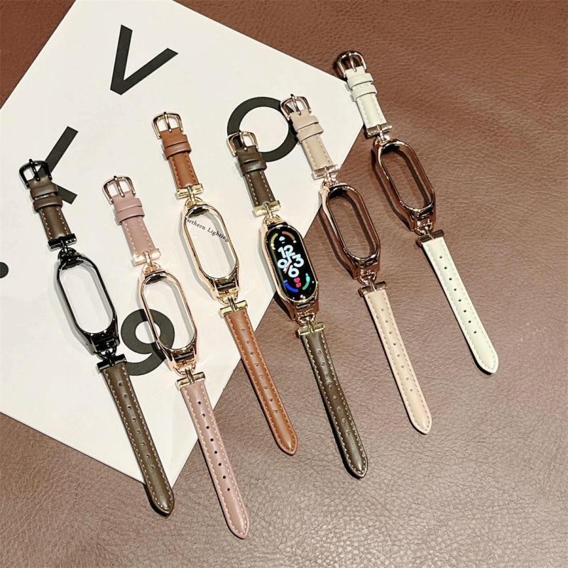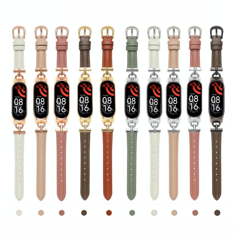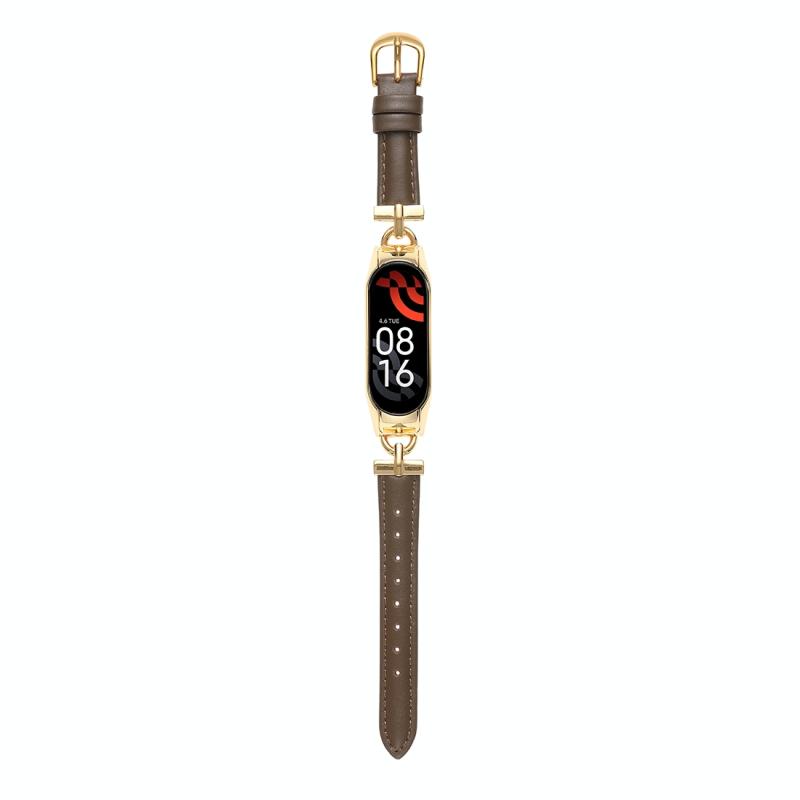 Για Xiaomi Mi Band 7 Δερμάτινο + Ατσάλινο Δαχτυλίδι Ρολογιού σε σχήμα D (Χρυσαφί καφέ δράκος)