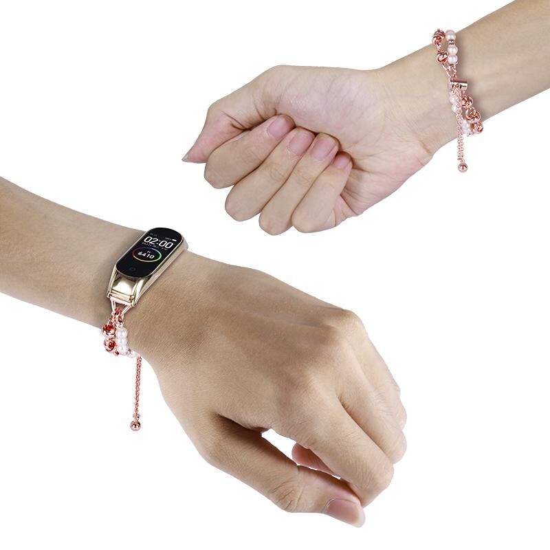 Για Xiaomi Mi Band 7 Διπλό Σχοινί από Μαργαριτάρια με Μεταλλικό Λουρί Ρολογιού (Μαύρο)