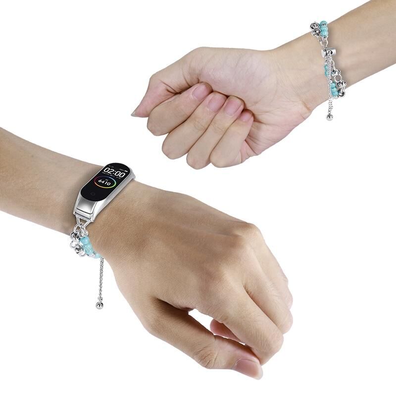 For Xiaomi Mi Band 7 Double Pearl Bead String Metal Watch Band(Turquoise)
