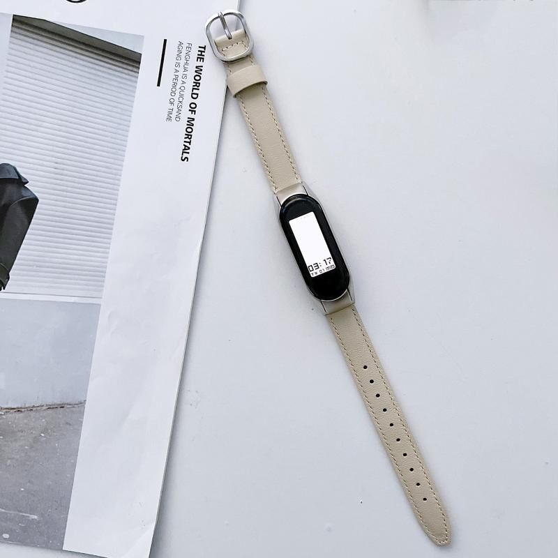 Για Xiaomi Mi Band 7 Αυθεντικό Δερμάτινο Λουράκι Ρολογιού (Γκρι)