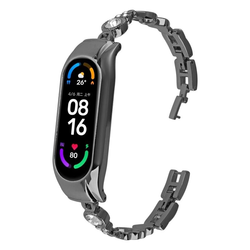 Για Xiaomi Mi Band 7 Heart-to-heart Diamond Metal Watch Band (Μαύρο)
