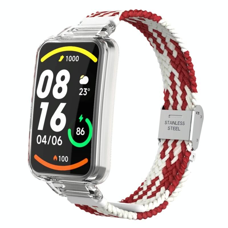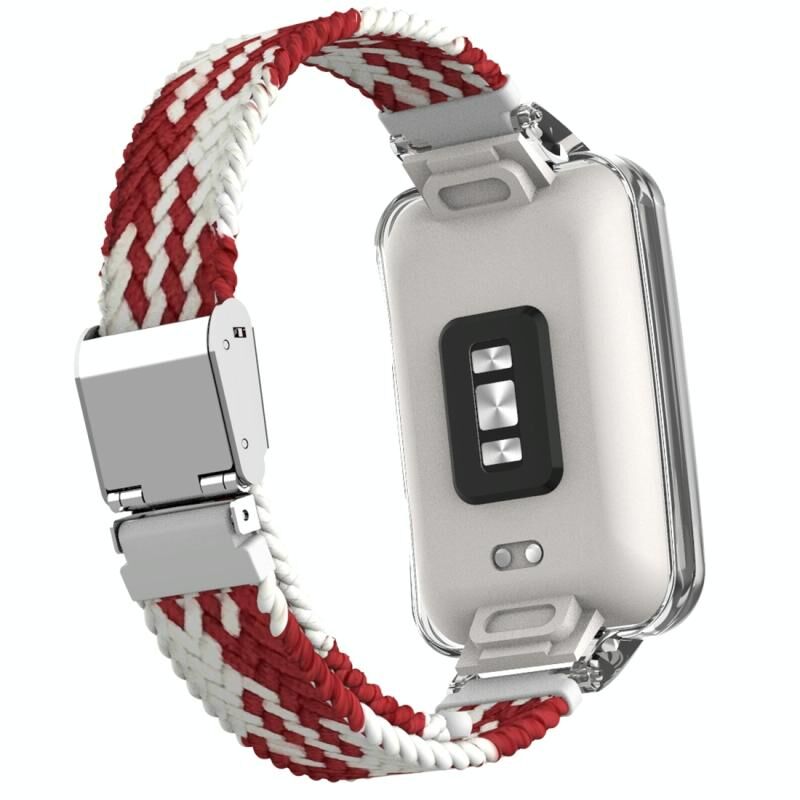 Για Xiaomi Mi Band 7 Pro Πλεκτή νάιλον πόρπη ενσωματωμένη ζώνη ρολογιού (κόκκινο λευκό)
