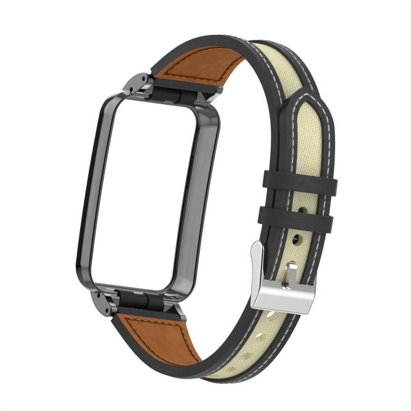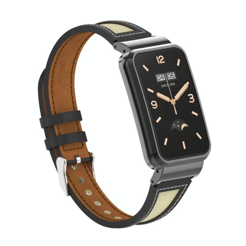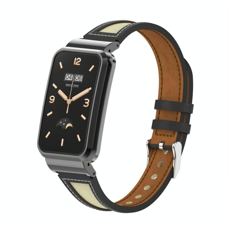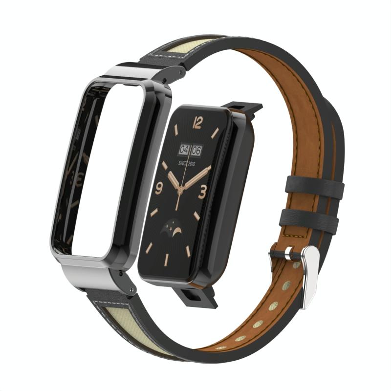 Για Xiaomi Mi Band 7 Pro Κολάζ Μικρή Μέση Δερμάτινο Μεταλλικό Πλαίσιο Λουράκι Ρολογιού (Μαύρο)