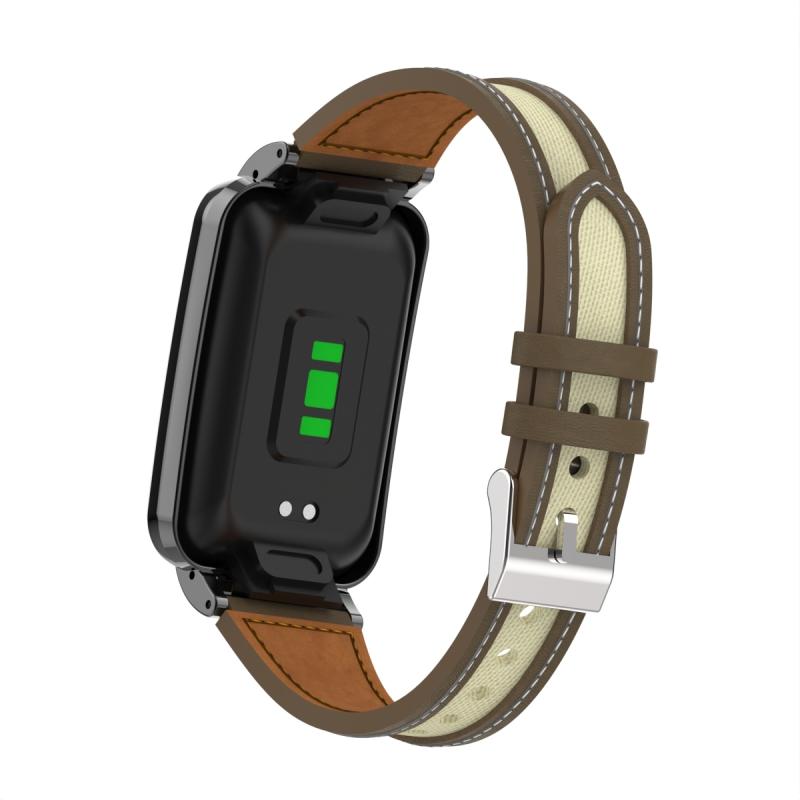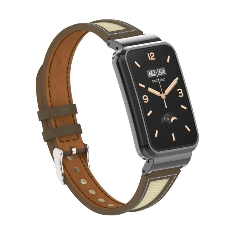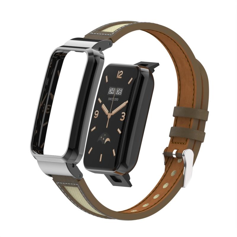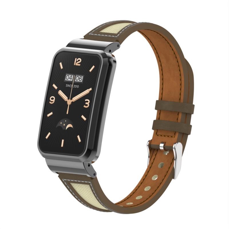 Για Xiaomi Mi Band 7 Pro Κολάζ Μικρή Μέση Δερμάτινο Μεταλλικό Πλαίσιο Λουράκι Ρολογιού (Καφέ)