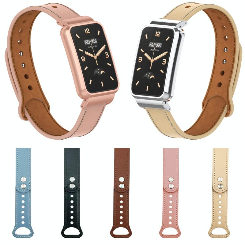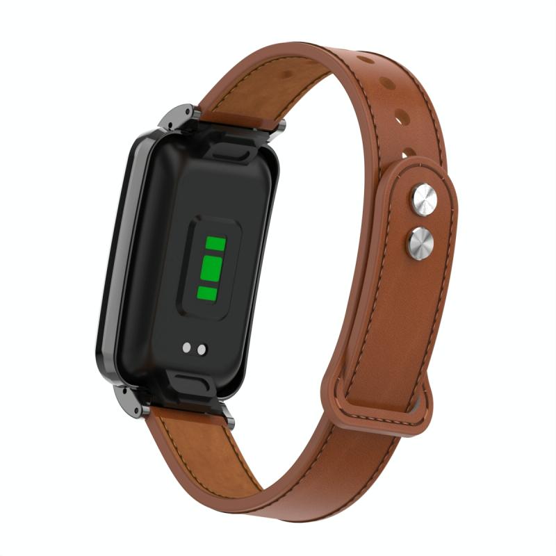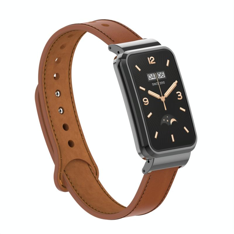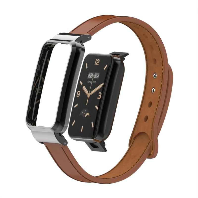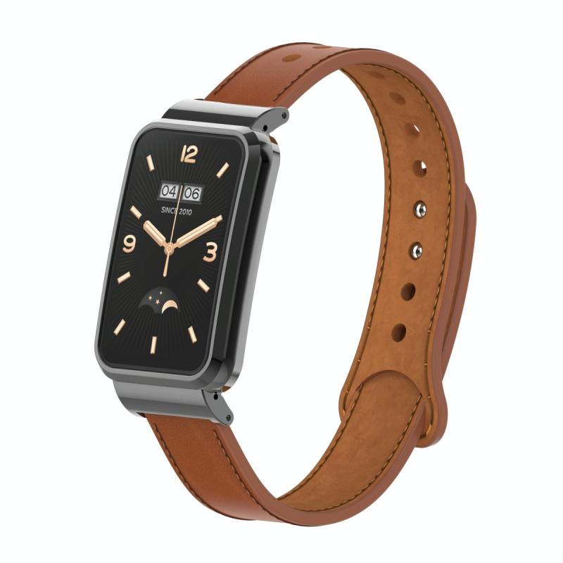 Για Xiaomi Mi Band 7 Pro Δερμάτινο Λουράκι με Διπλά Στιλέτσα και Μεταλλικό Πλαίσιο (Καφέ)