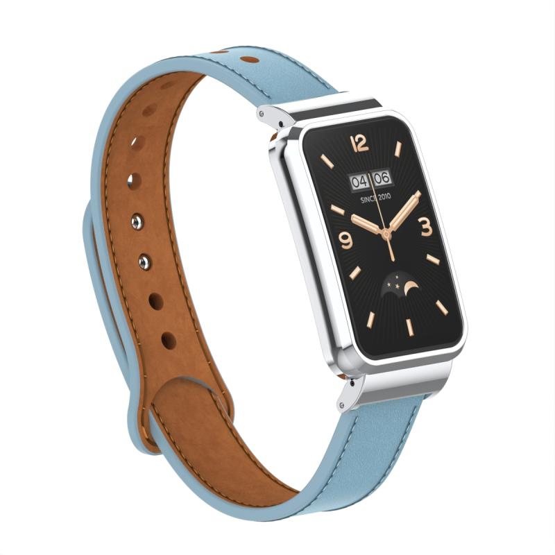 Για Xiaomi Mi Band 7 Pro Δερμάτινο Λουράκι με Διπλά Στιλέτσα και Μεταλλικό Πλαίσιο (Ψυχρό Μπλε)