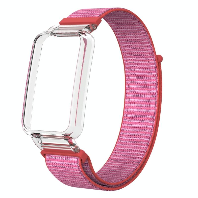 For Xiaomi Mi Band 7 Pro Integrated PC Protective Case + Nylon Loop Watch Band(Brilliant Pink)