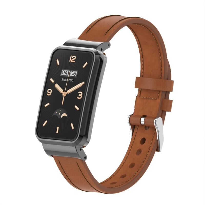 For Xiaomi Mi Band 7 Pro Microfiber Leather Metal Frame Watch Band(Brown)