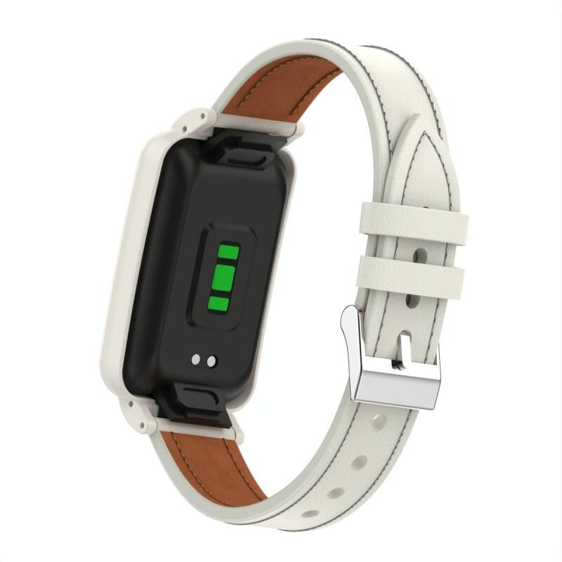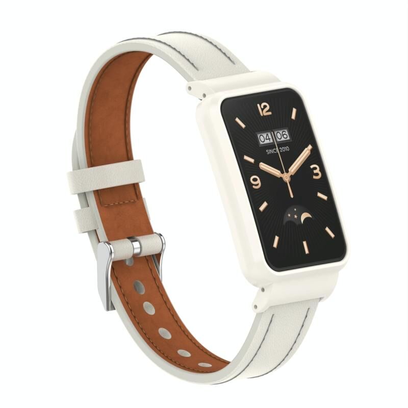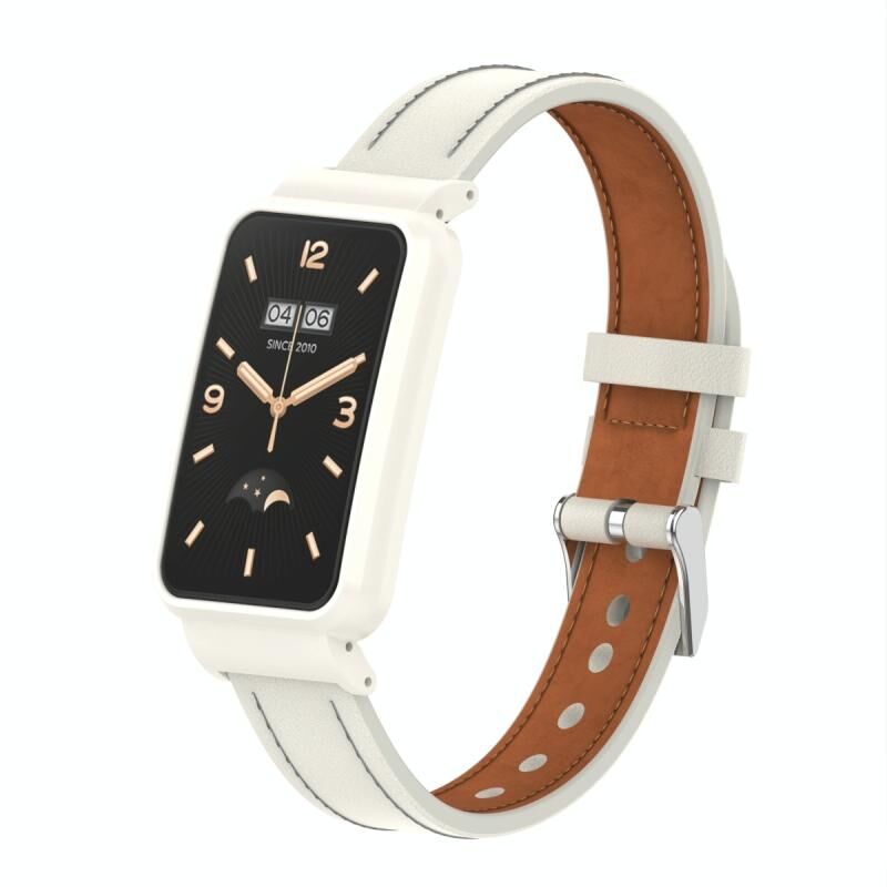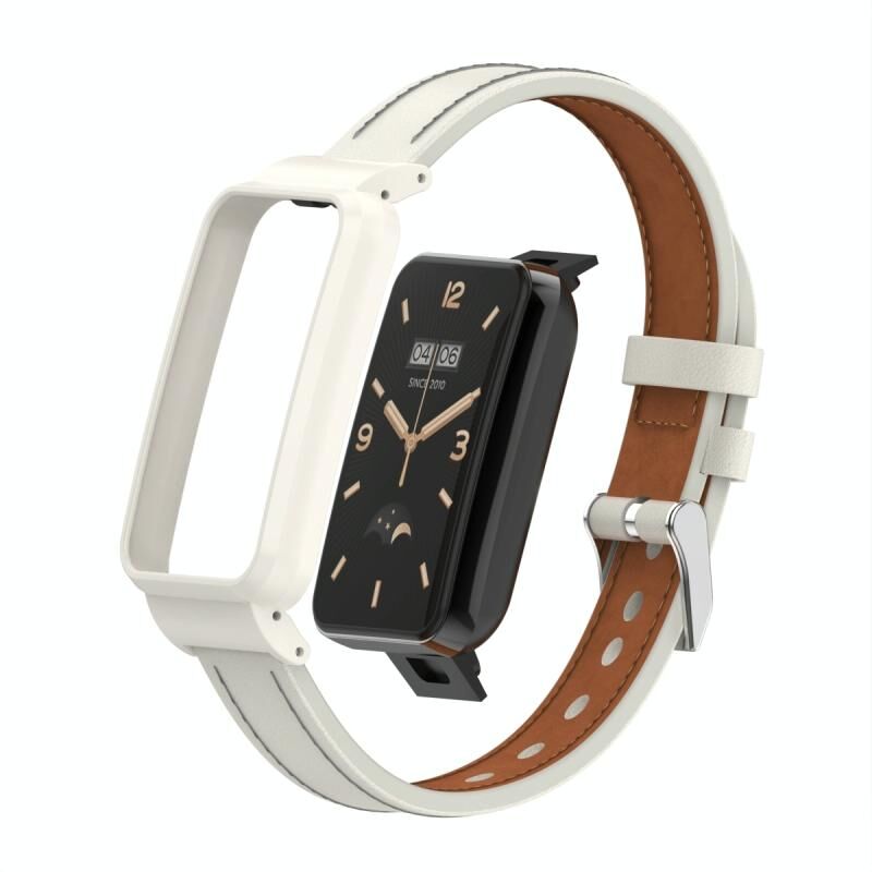 For Xiaomi Mi Band 7 Pro Microfiber Leather Metal Frame Watch Band(Warm White + Ivory Case)