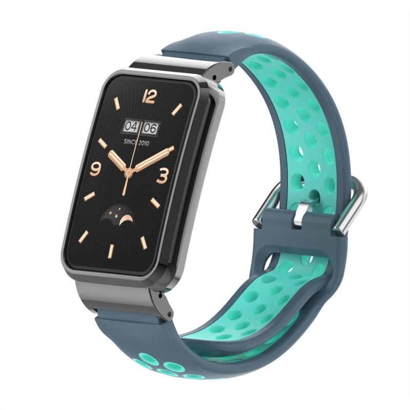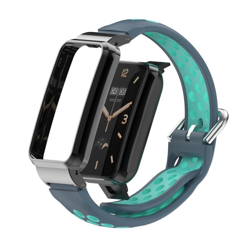 For Xiaomi Mi Band 7 Pro Silicone Metal Frame Watch Band(Grey + Cyan)