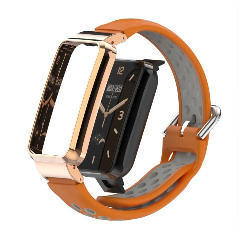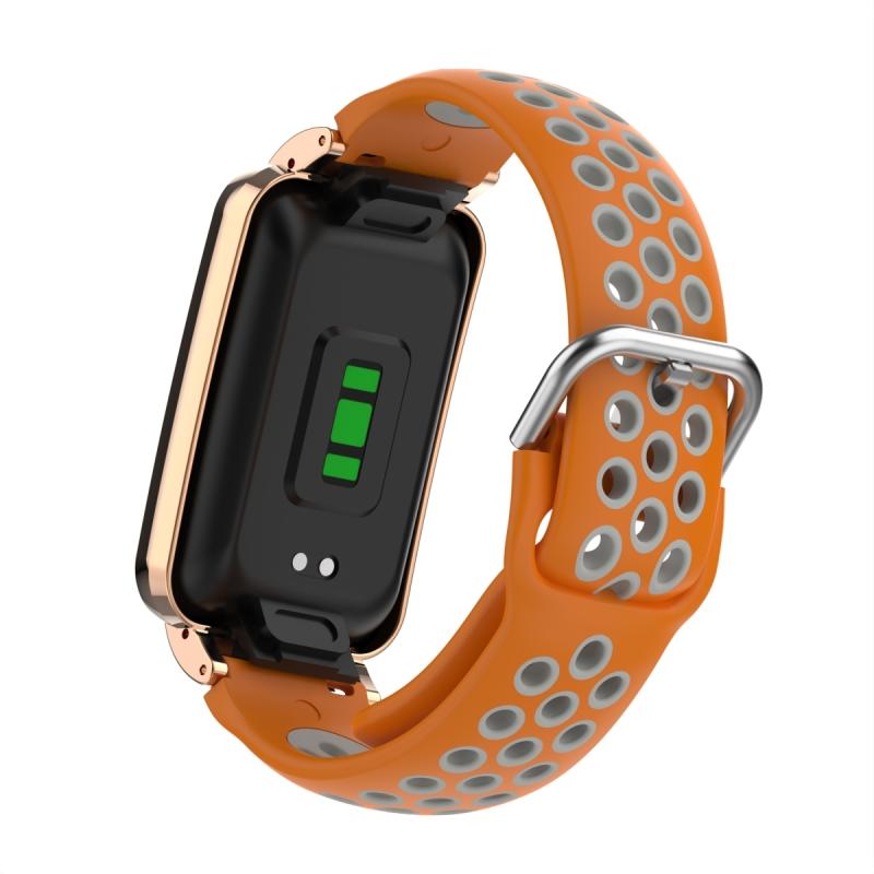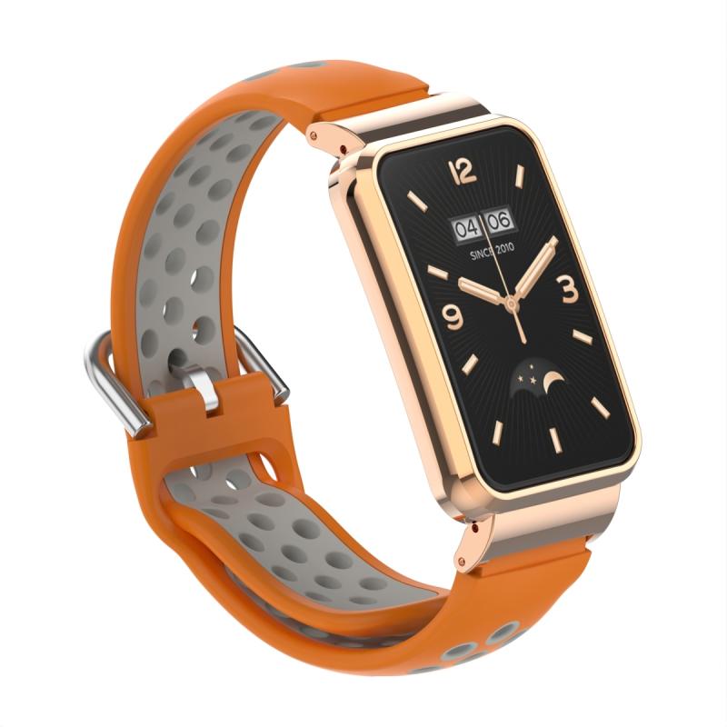 For Xiaomi Mi Band 7 Pro Silicone Metal Frame Watch Band(Orange + Grey)