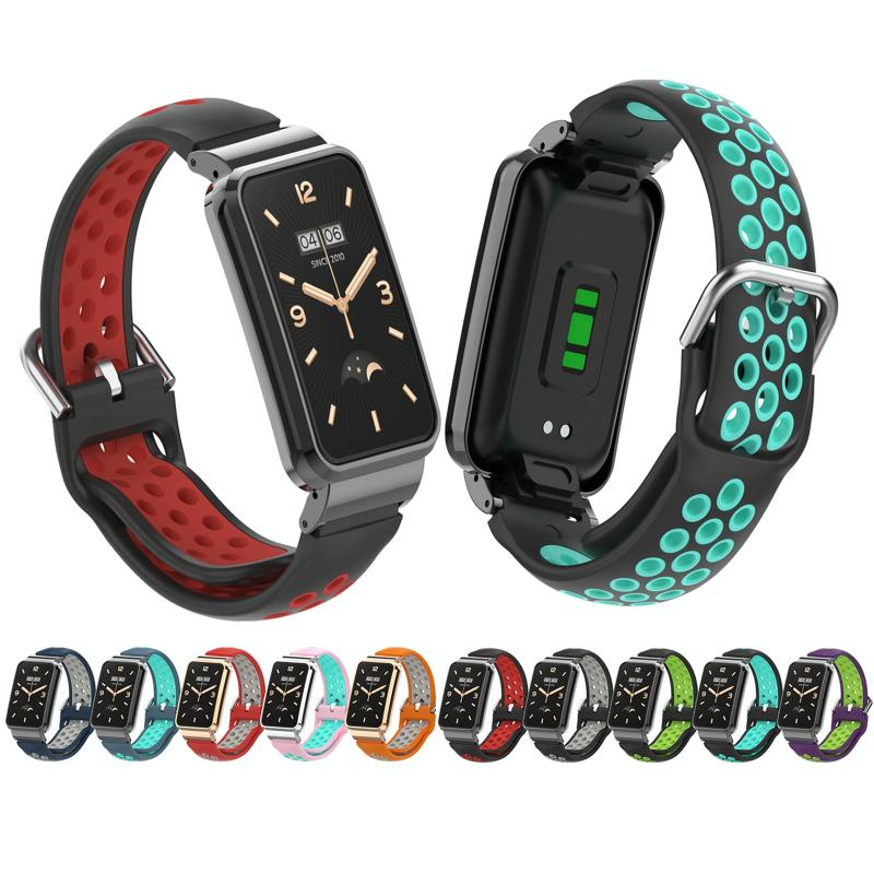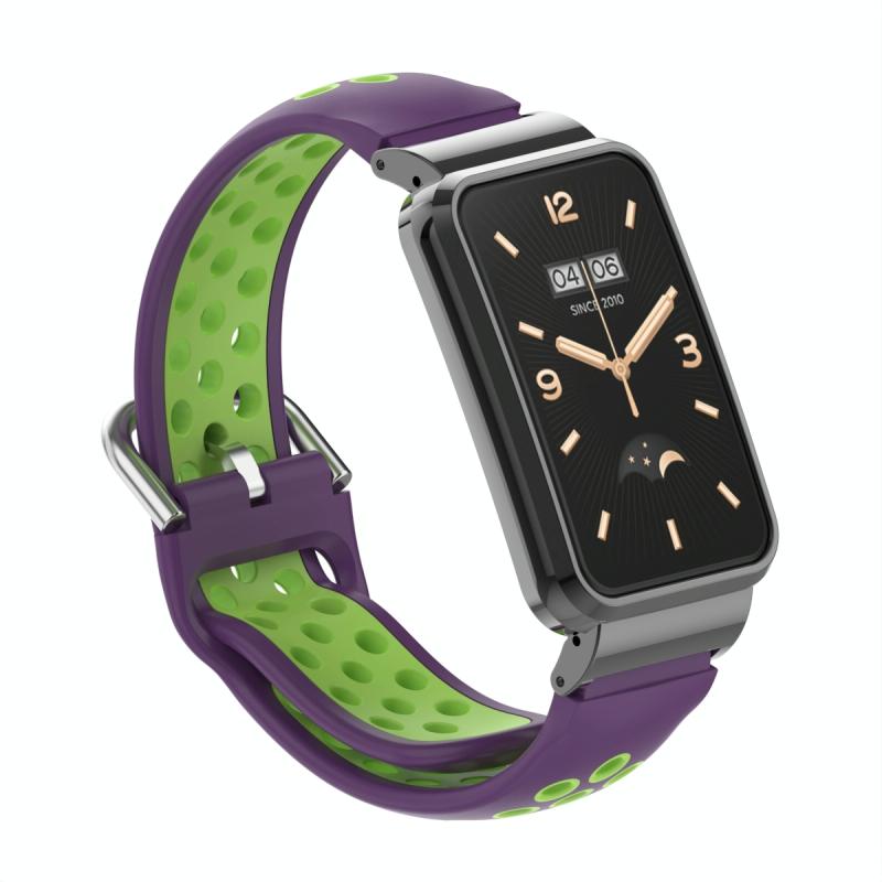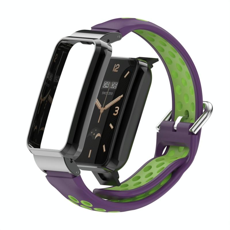 For Xiaomi Mi Band 7 Pro Silicone Metal Frame Watch Band(Purple + Green)
