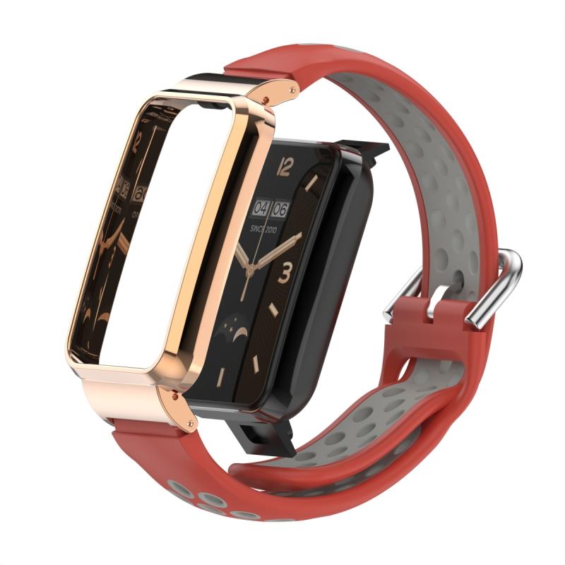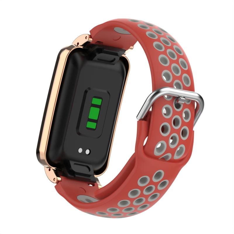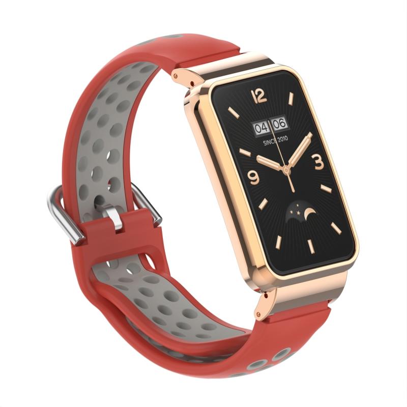 For Xiaomi Mi Band 7 Pro Silicone Metal Frame Watch Band(Red + Grey)