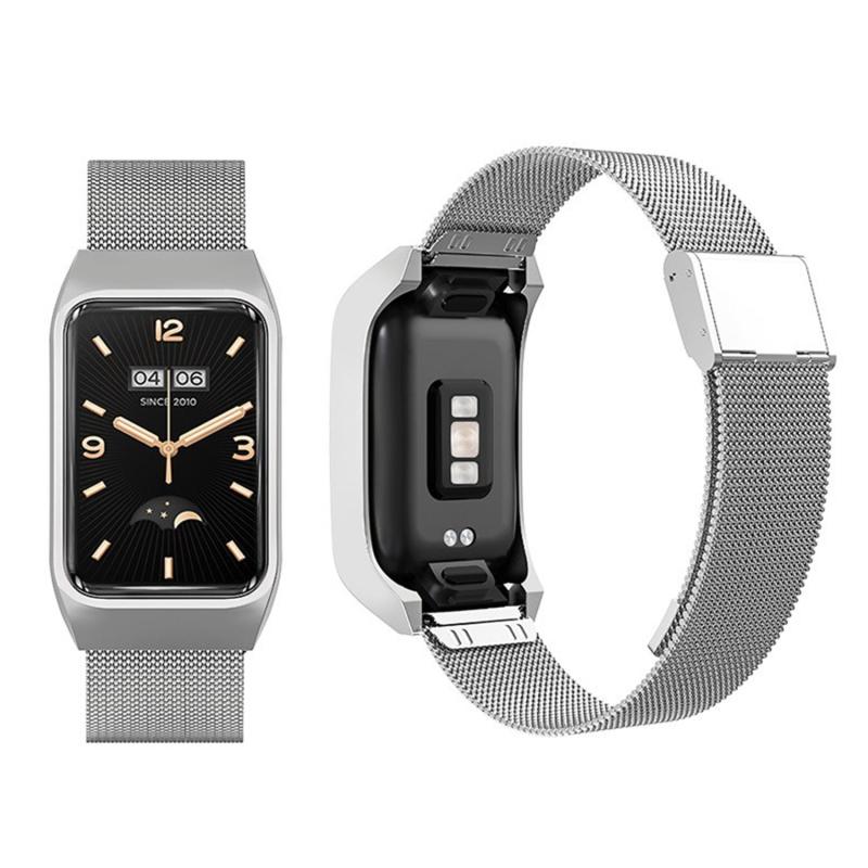 For Xiaomi Mi Band 7 Pro Stainless Steel Frame Integrated Milanese Buckle Metal Watch Band(Silver)