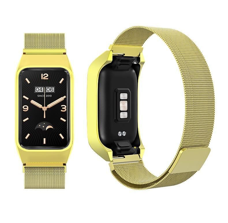 For Xiaomi Mi Band 7 Pro Stainless Steel Frame Integrated Milanese Magnetic Metal Watch Band(Gold)