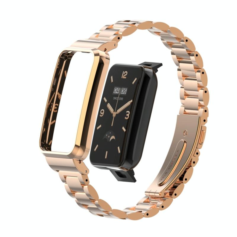 For Xiaomi Mi Band 7 Pro Three-Bead Metal Watch Band(Rose Gold)