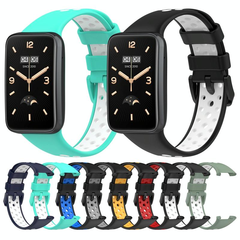 For Xiaomi Mi Band 7 Pro Two-Color Breathable Silicone Watch Band(Black+Blue)