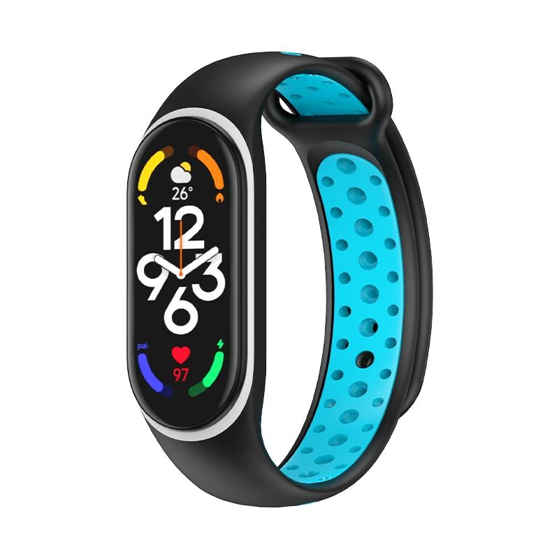 For Xiaomi Mi Band 7 Two-color Silicone Watch Band(White Border + Black+Blue)