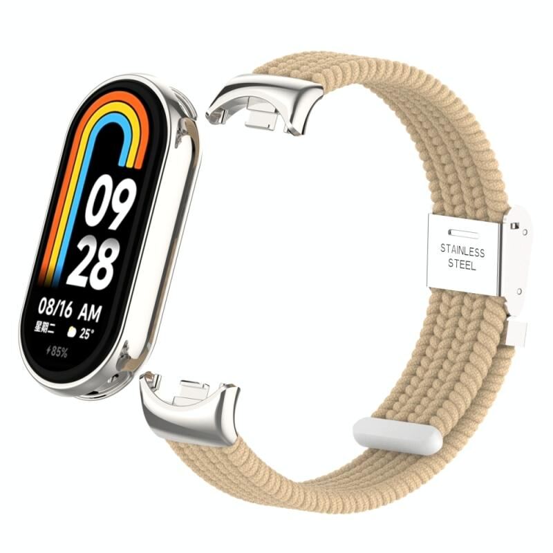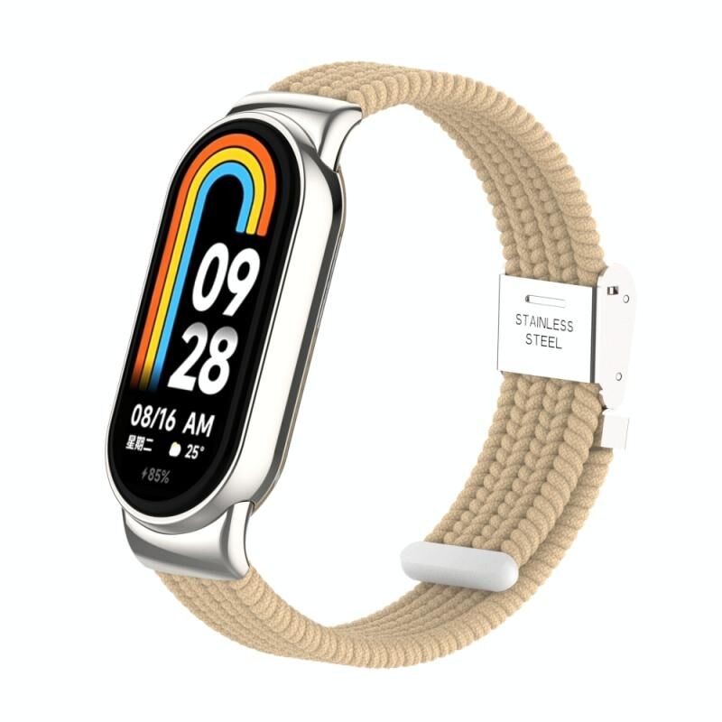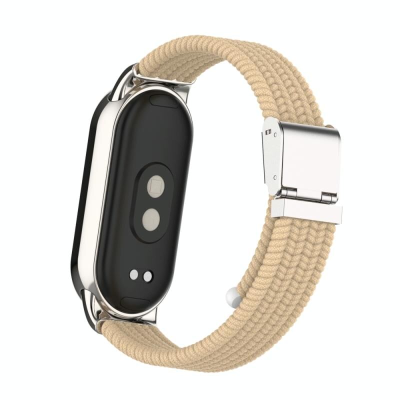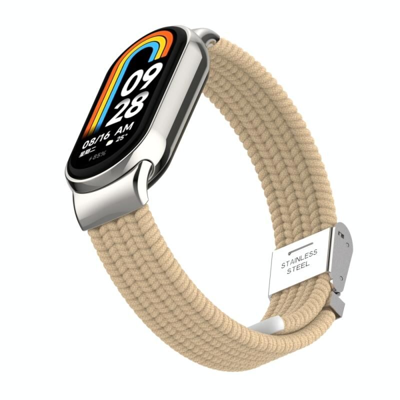 Για Xiaomi Mi Band 8 / 8 NFC Μεταλλική κεφαλή + Νάυλον πλεκτό ατσάλινη ζώνη ρολογιού με αγκράφα (βερίκοκο)