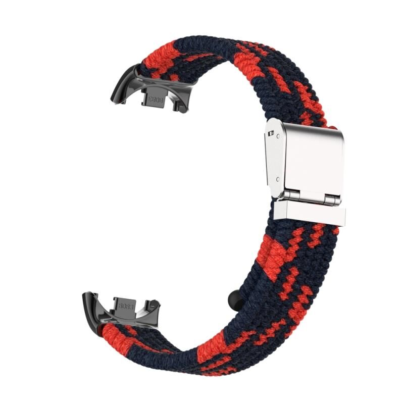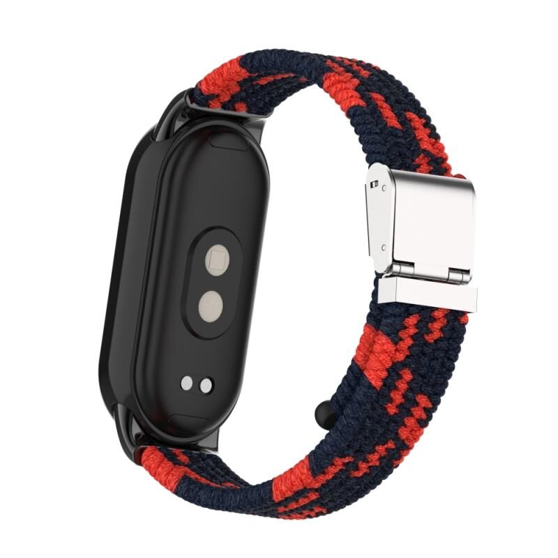 Για Xiaomi Mi Band 8 / 8 NFC Μεταλλική κεφαλή + Νάυλον πλεκτό ατσάλινη ζώνη ρολογιού με αγκράφα (μαύρο κόκκινο)