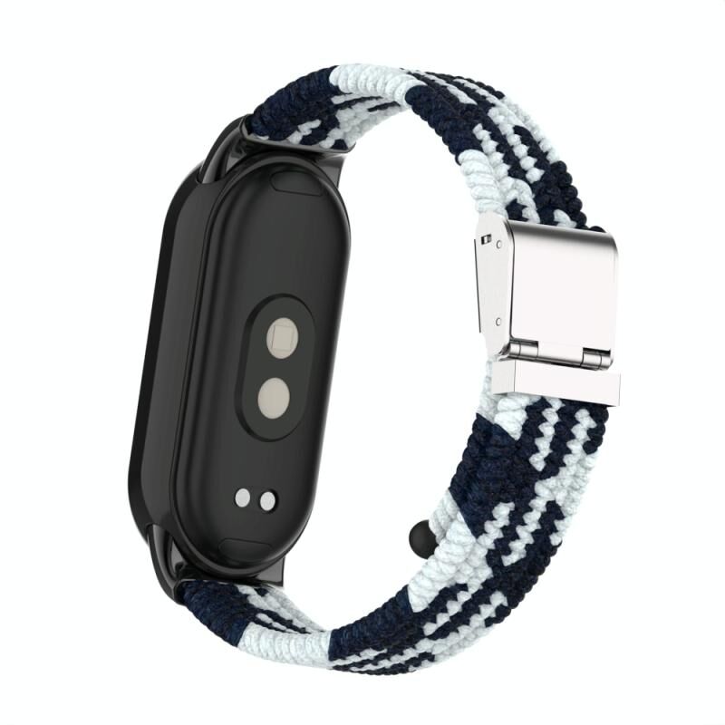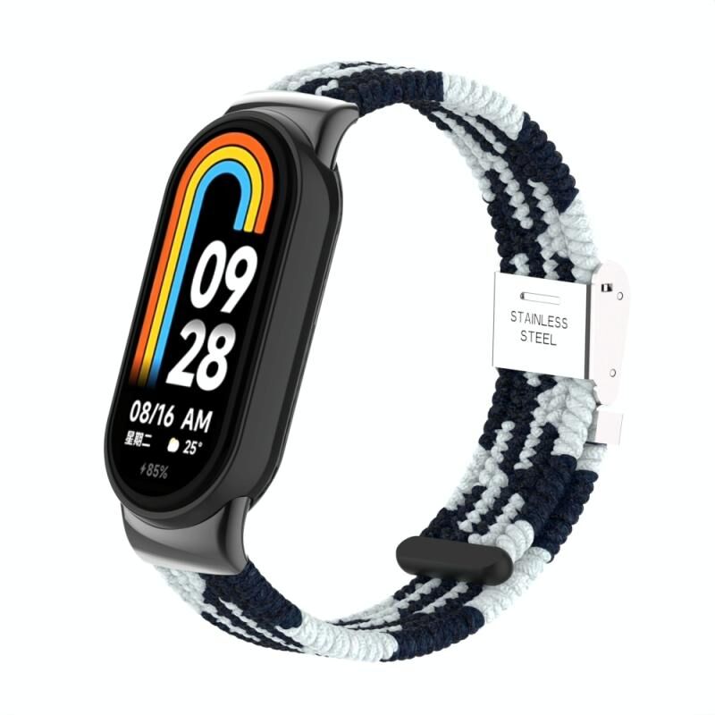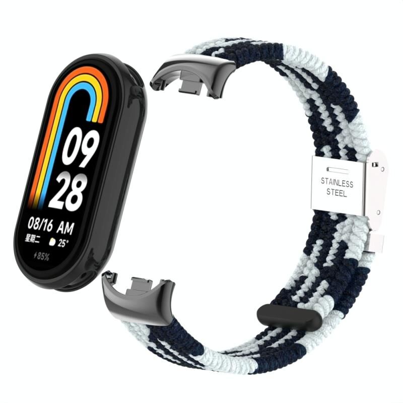 Για Xiaomi Mi Band 8 / 8 NFC Μεταλλική κεφαλή + Νάυλον πλεγμένη ατσάλινη ζώνη ρολογιού με αγκράφα (Μαύρο Λευκό)