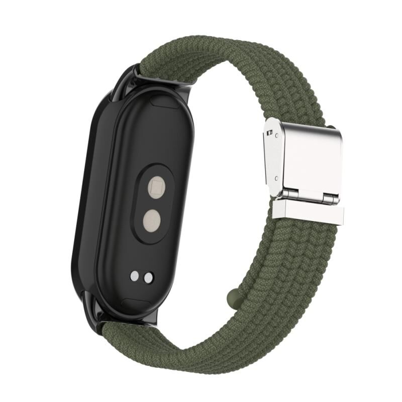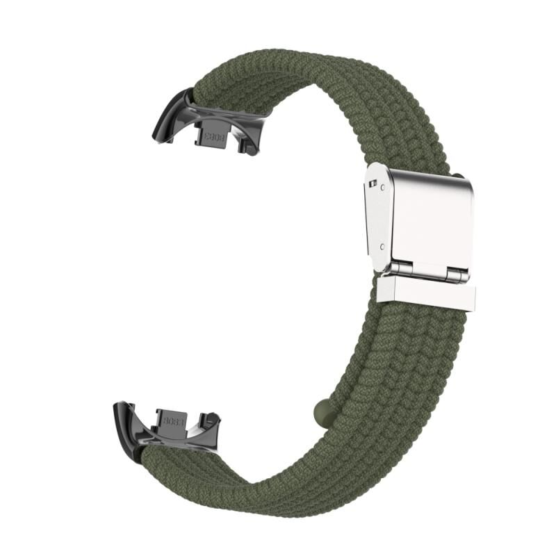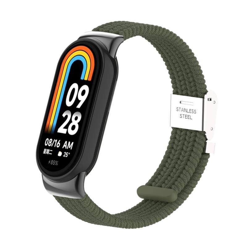 Για Xiaomi Mi Band 8 / 8 NFC Μεταλλική κεφαλή + Νάυλον πλεκτό ατσάλινη ζώνη ρολογιού με αγκράφα (σκούρο πράσινο)