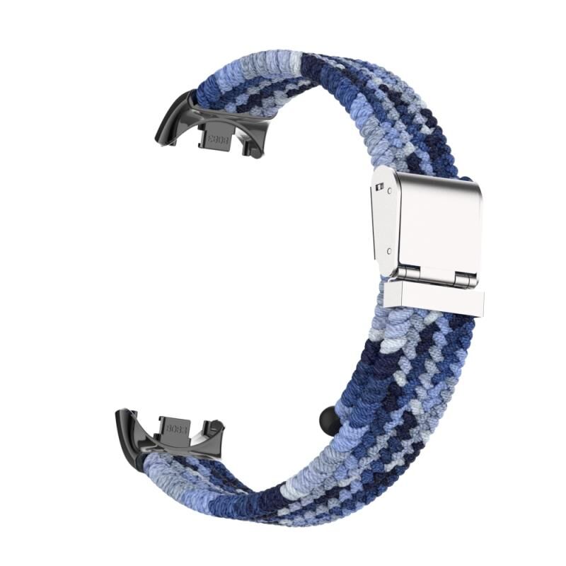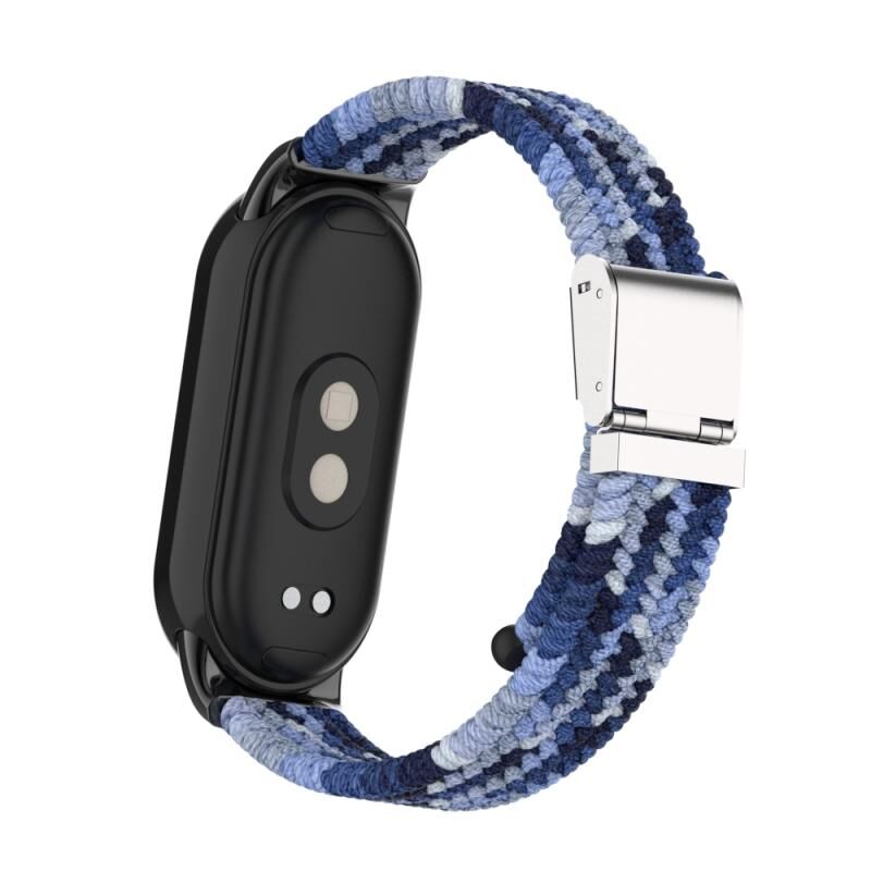 Για Xiaomi Mi Band 8 / 8 NFC Μεταλλική κεφαλή + Νάιλον πλεκτή ατσάλινη ζώνη ρολογιού με αγκράφα (Ναυτικό μπλε)