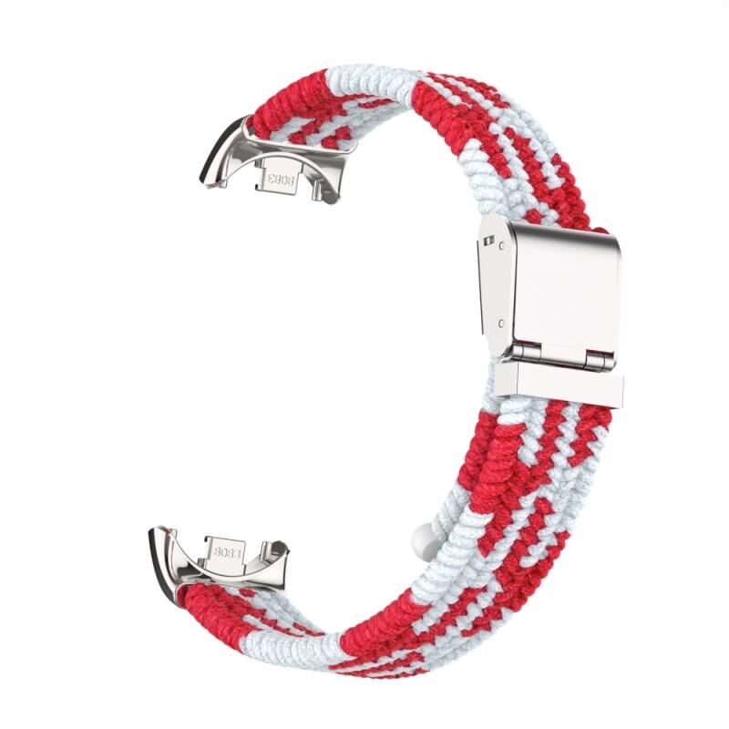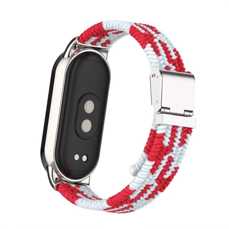 Για Xiaomi Mi Band 8 / 8 NFC Μεταλλική κεφαλή + Νάυλον πλεγμένη ατσάλινη ζώνη ρολογιού με αγκράφα (κόκκινο λευκό)