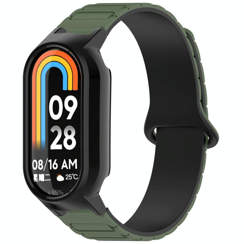 Για Xiaomi Mi Band 8 / 8 NFC Κορδόνι Σιλικόνης Μαγνητικό Σχήματος I (Πράσινο+Μαύρο)
