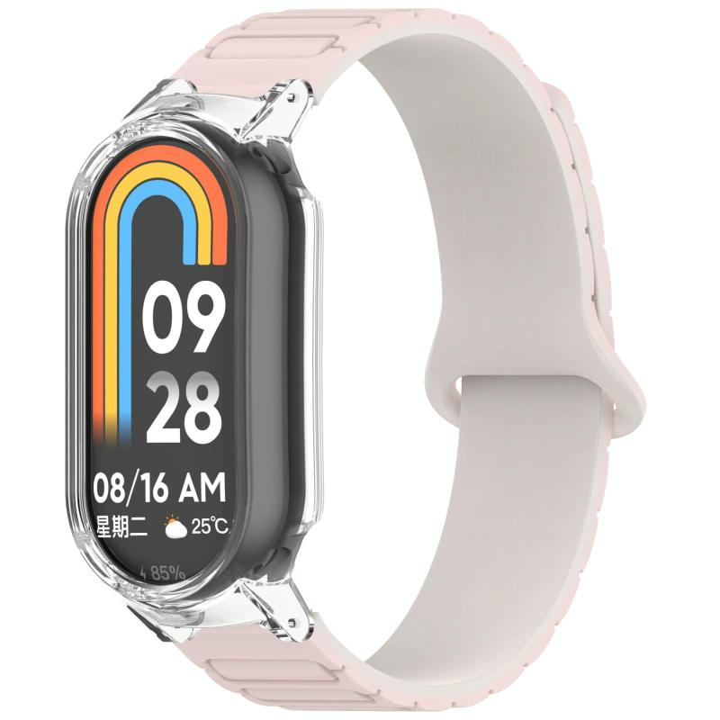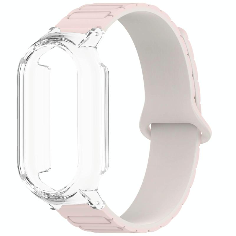 Για Xiaomi Mi Band 8 / 8 NFC Κορδόνι Σιλικόνης Μαγνητικό Σχήματος I (Ροζ Αστρόφωτο+Διαφανές)