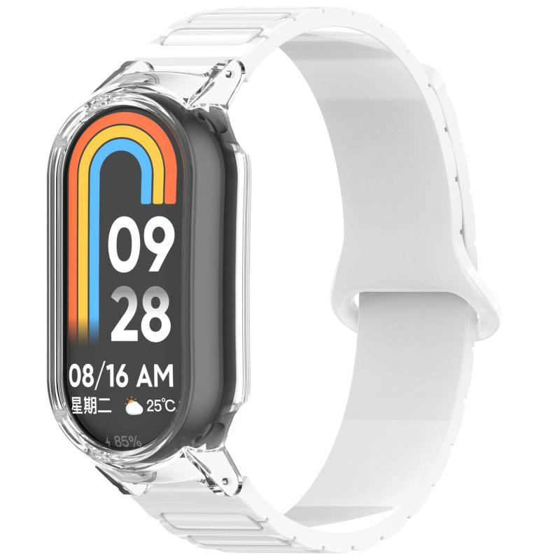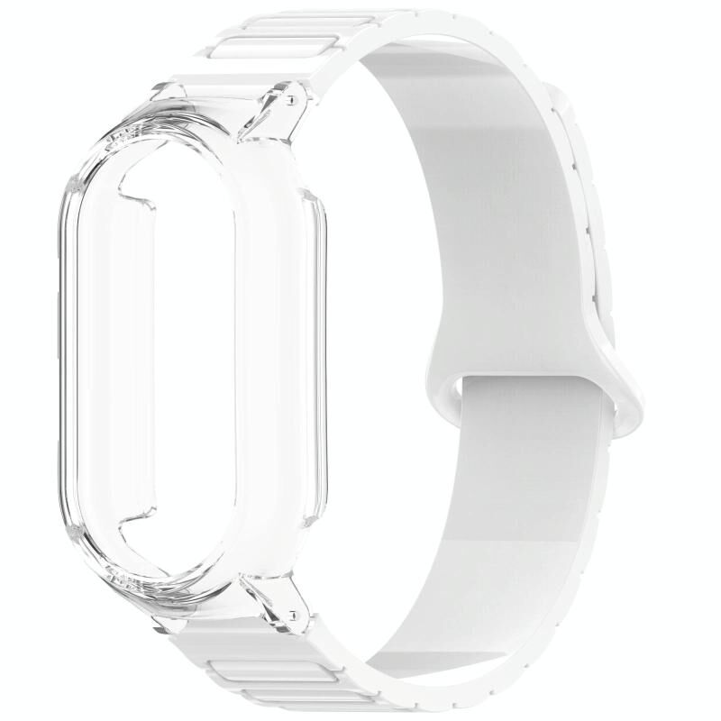 Για Xiaomi Mi Band 8 / 8 NFC Κορδόνι Σιλικόνης Μαγνητικό Σχήματος I (Λευκό+Διαφανές)