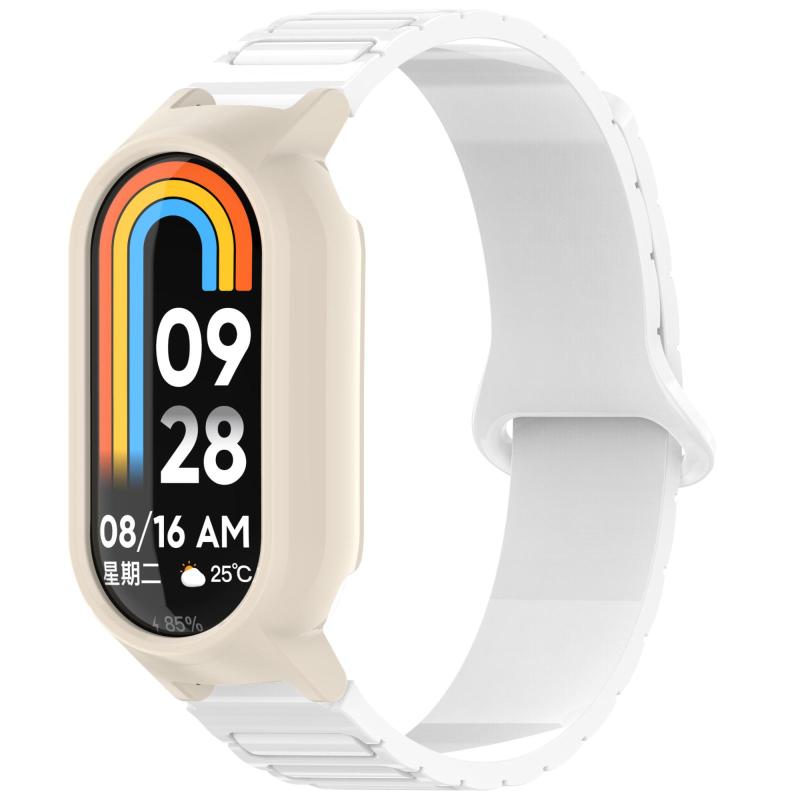 Για Xiaomi Mi Band 8 / 8 NFC Κορδόνι Σιλικόνης Μαγνητικό Σχήματος I (Λευκό+Λευκό)