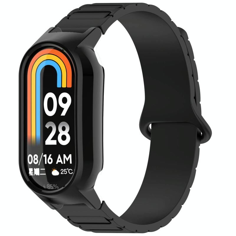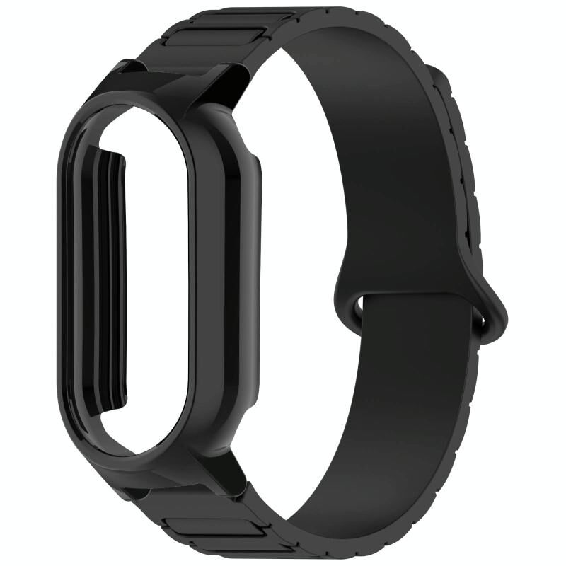 Για Xiaomi Mi Band 8 / 8 NFC Watch Case Integrated I-Shaped Magnetic Silicone Watch Band (Μαύρο+Μαύρο)