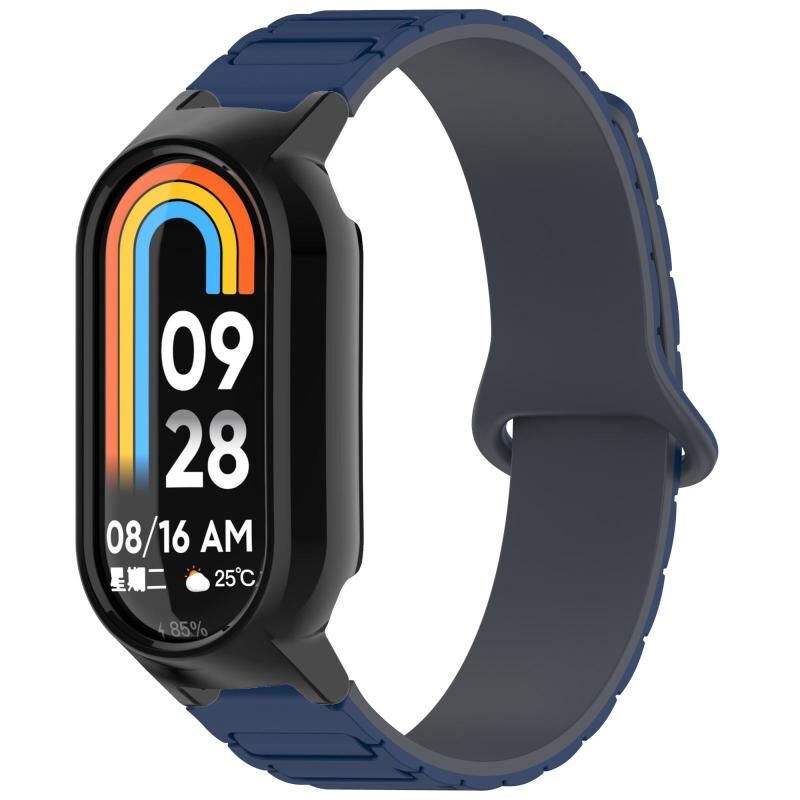 Για Xiaomi Mi Band 8 / 8 NFC Watch Case Integrated I-Shaped Magnetic Silicone Watch Band (μπλε γκρι+μαύρο)