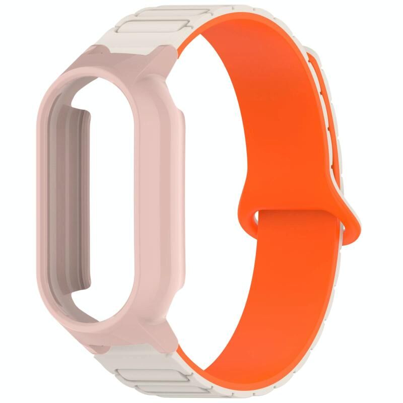 Για Xiaomi Mi Band 8 / 8 NFC Watch Case Integrated I-Shaped Magnetic Silicone Watch Band (Starlight Orange+Pink)