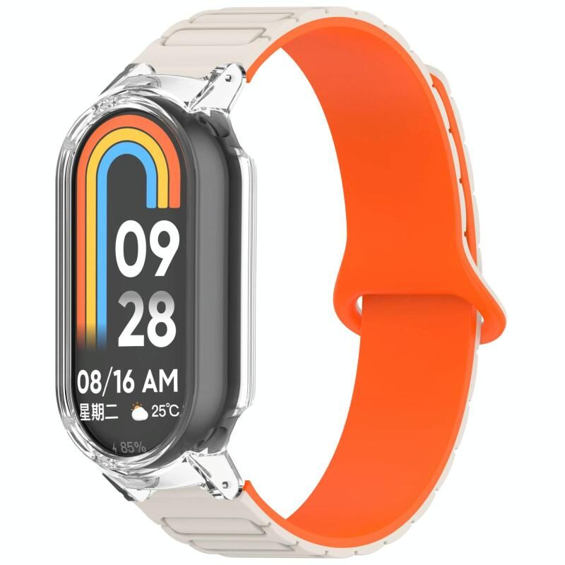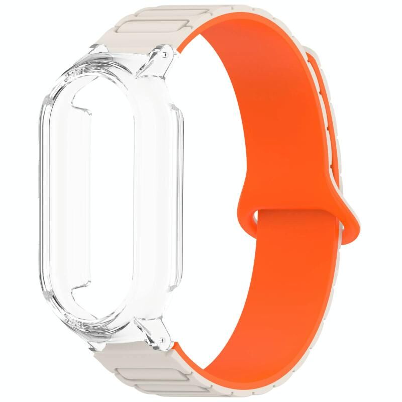 Για το Xiaomi Mi Band 8 / 8 NFC Watch Case Integrated I-Shaped Magnetic Silicone Watch Band (Starlight Orange+Transparent)