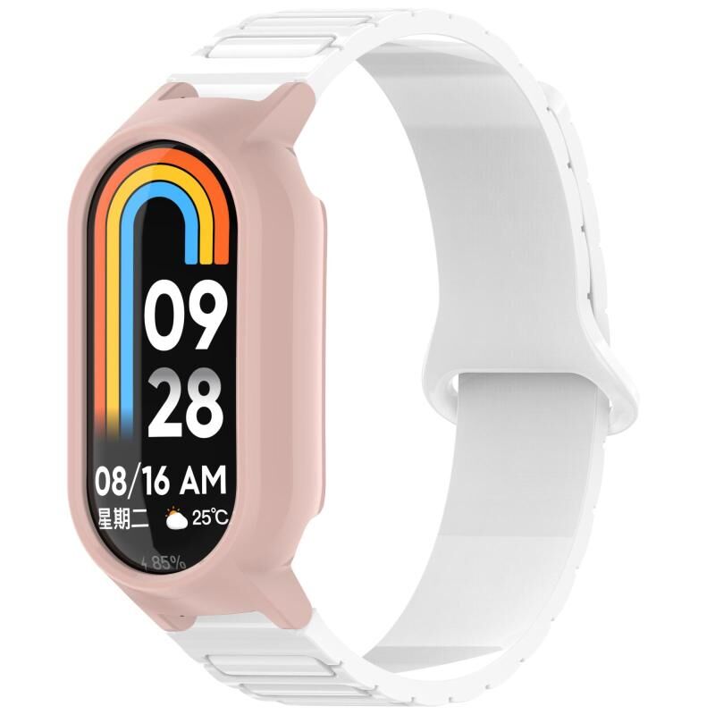 Για Xiaomi Mi Band 8 / 8 NFC Watch Case Integrated I-Shaped Magnetic Silicone Watch Band (Λευκό+Ροζ)