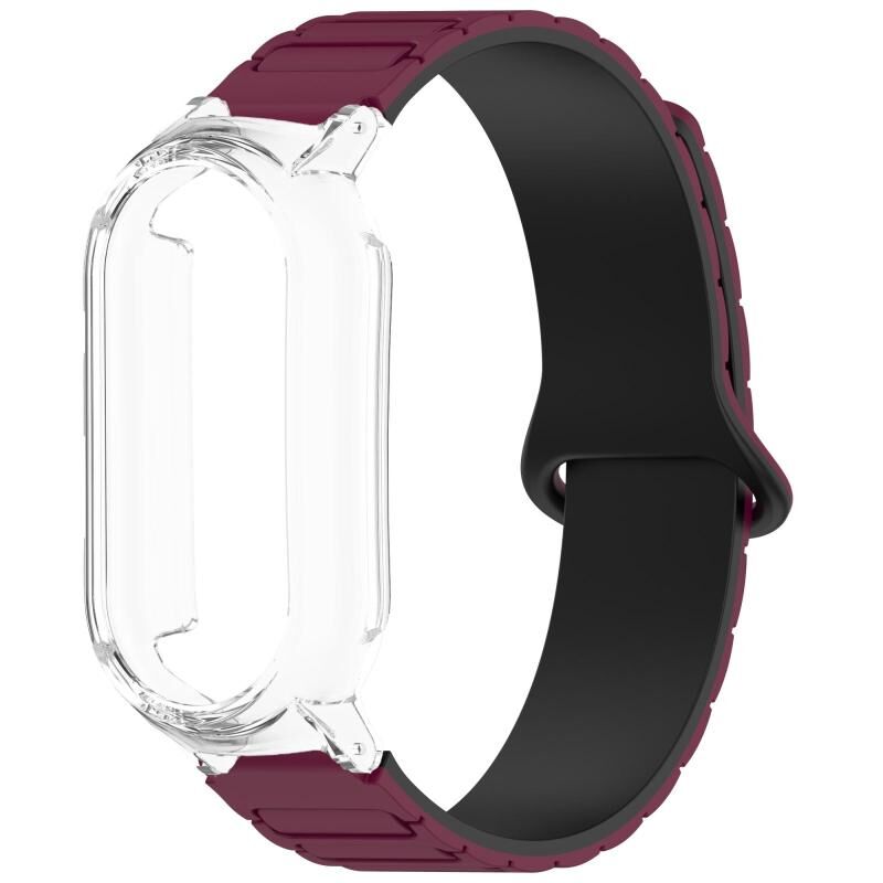 Για Xiaomi Mi Band 8 / 8 NFC Watch Case Integrated I-Shaped Magnetic Silicone Watch Band (Wine Red Black+Transparent)
