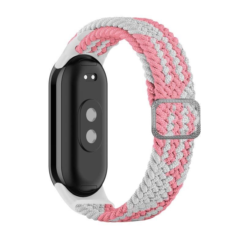 Για Xiaomi Mi Band 8 Ρυθμιζόμενο Πλεκτό Νάιλον Λουράκι Ρολογιού με Ελαστικότητα (Ροζ Λευκό)
