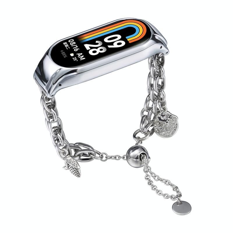 Για Xiaomi Mi Band 8 Βραχιόλι με χάντρες Μεταλλική ζώνη ρολογιού (Ασημί + καλαμπόκι)