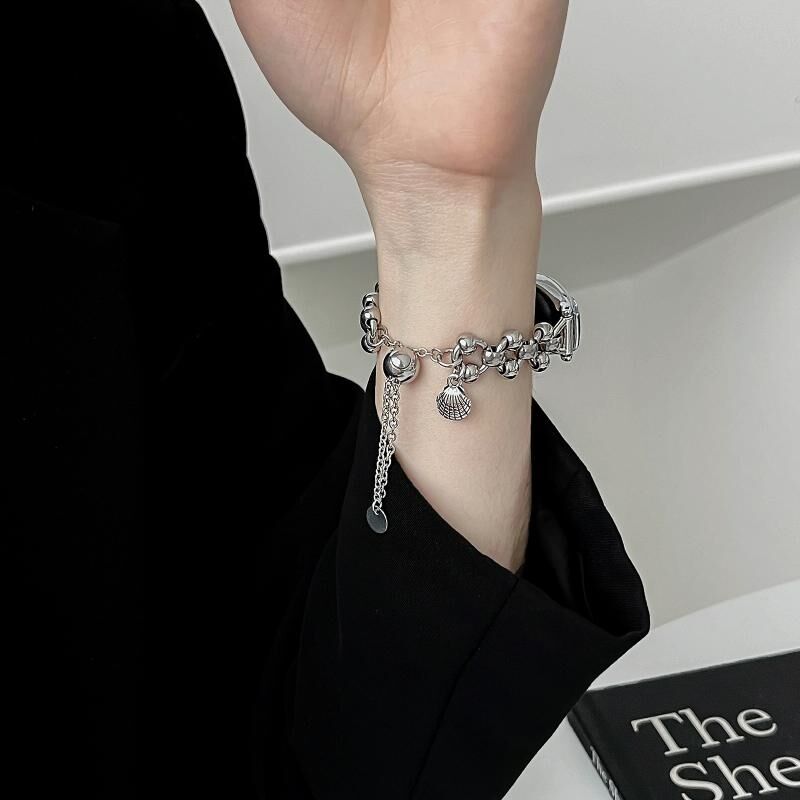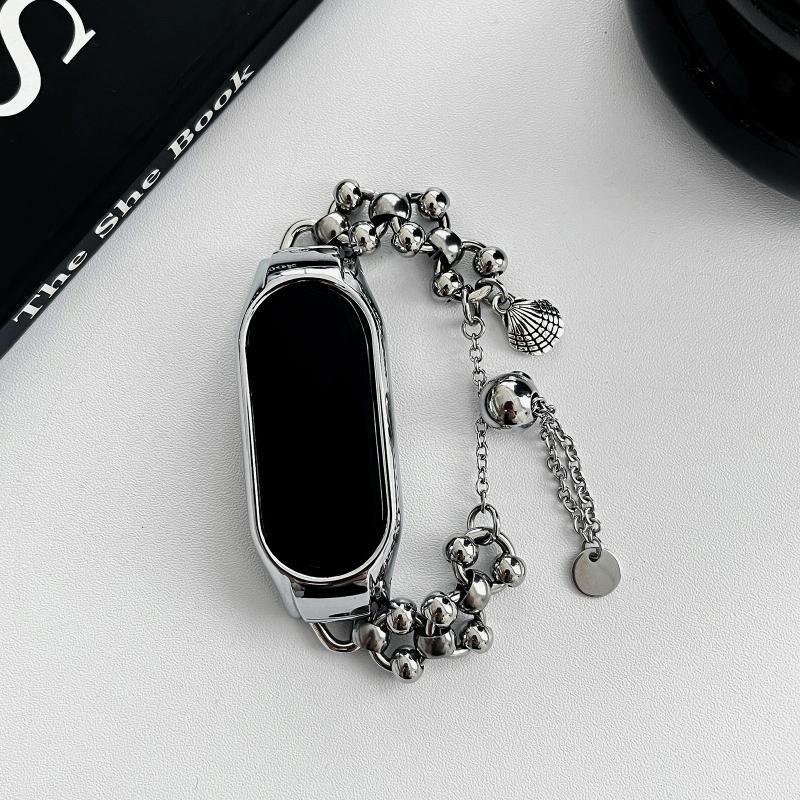 Για Xiaomi Mi Band 8 Βραχιόλι με χάντρες Μεταλλικό λουράκι ρολογιού (Ασημί+Διπλή χάντρα)