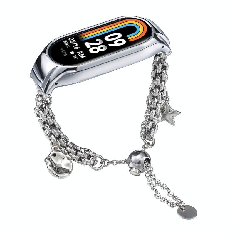 Για Xiaomi Mi Band 8 Βραχιόλι με χάντρες Μεταλλική ζώνη ρολογιού (Ασημί+αστέρι)