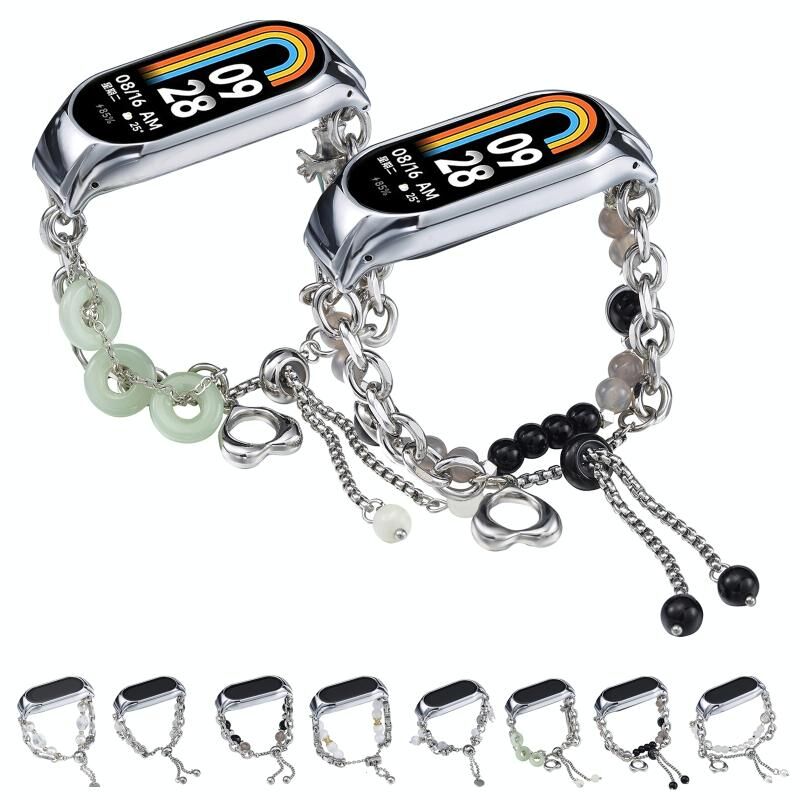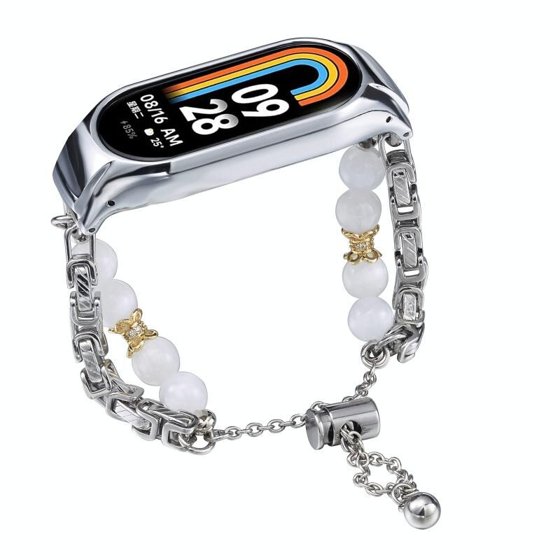 Για το Xiaomi Mi Band 8 Κρυστάλλινη χάντρα Onyx Watch Band (Ασημί + Χαλκός κολάρο)