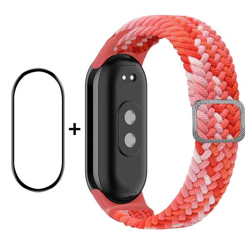 For Xiaomi Mi Band 8 ENKAY Hat-Prince 2 in 1 Set Full Coverage Screen Protector + Elastic Braided Nylon Watch Band(Colorful Red) (ENKAY)