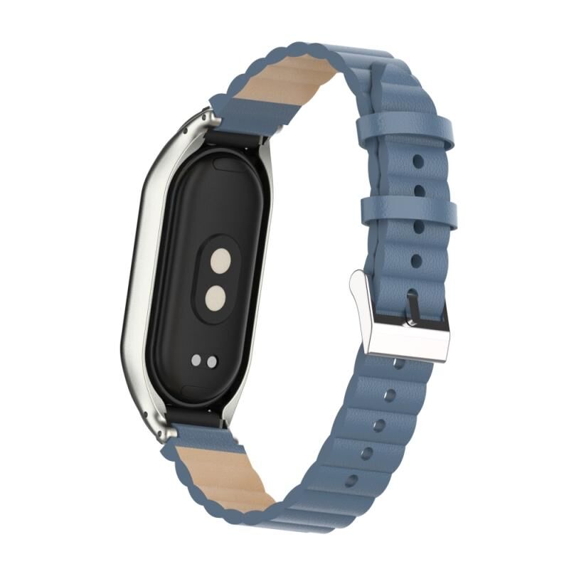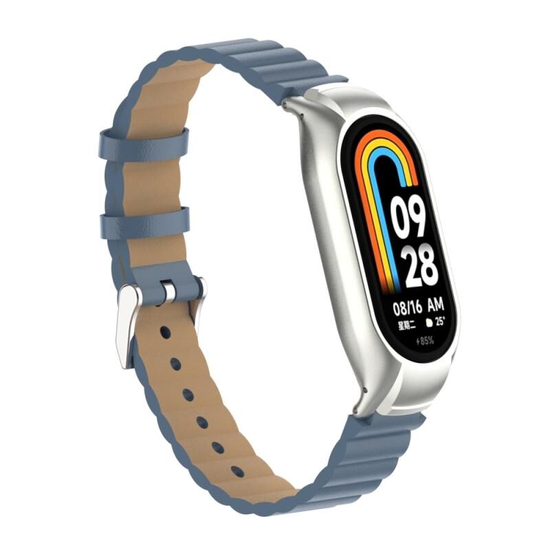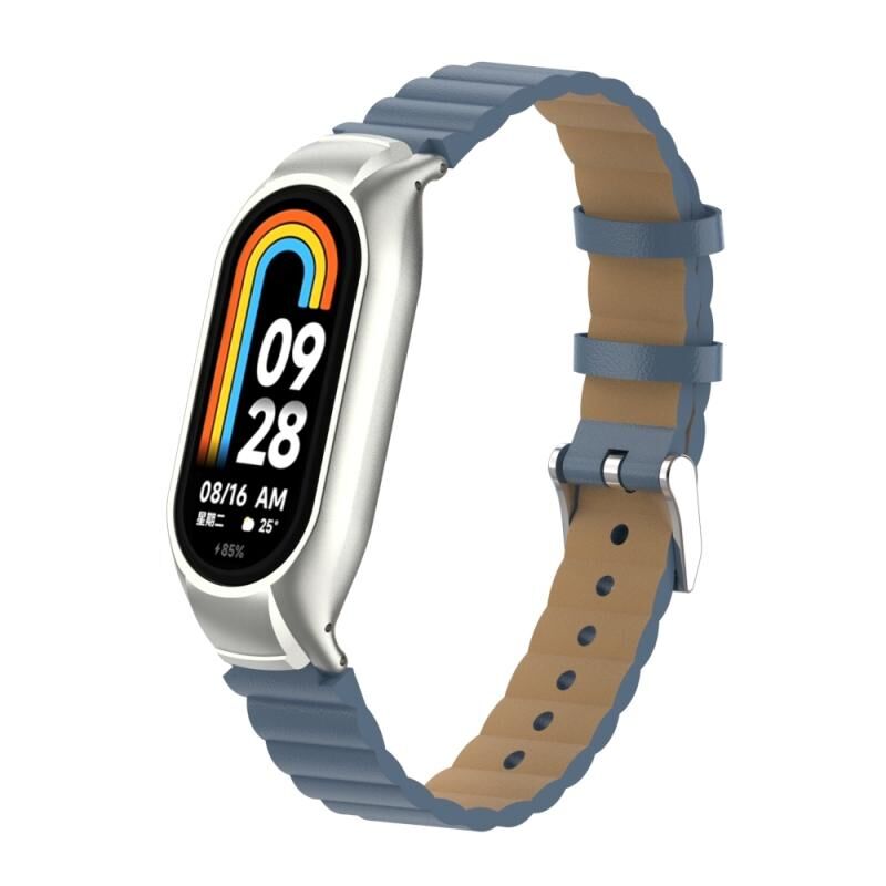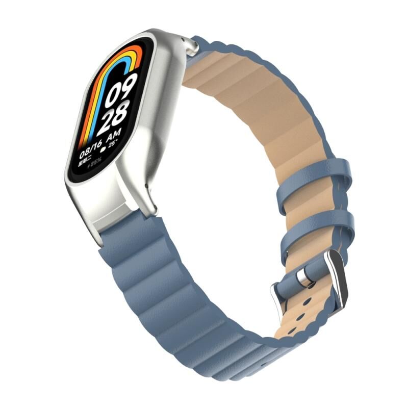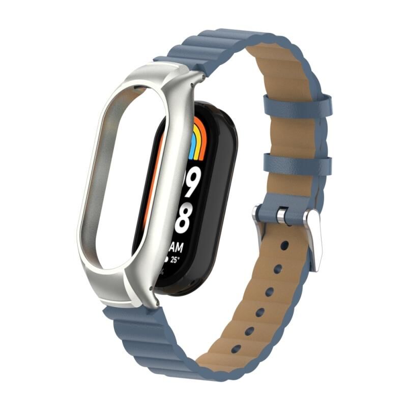 Για Xiaomi Mi Band 8 Ενσωματωμένη μεταλλική θήκη + δερμάτινη ζώνη ρολογιού μπαμπού (ασημί γκρι)