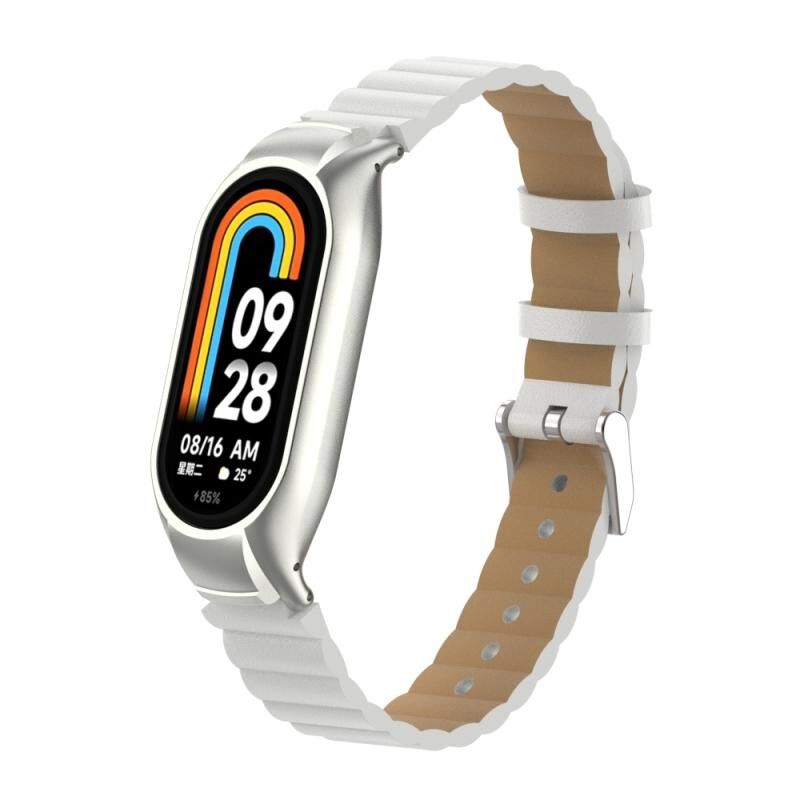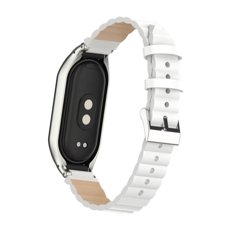 Για Xiaomi Mi Band 8 Ενσωματωμένη μεταλλική θήκη + δερμάτινη ζώνη ρολογιού μπαμπού (λευκό)