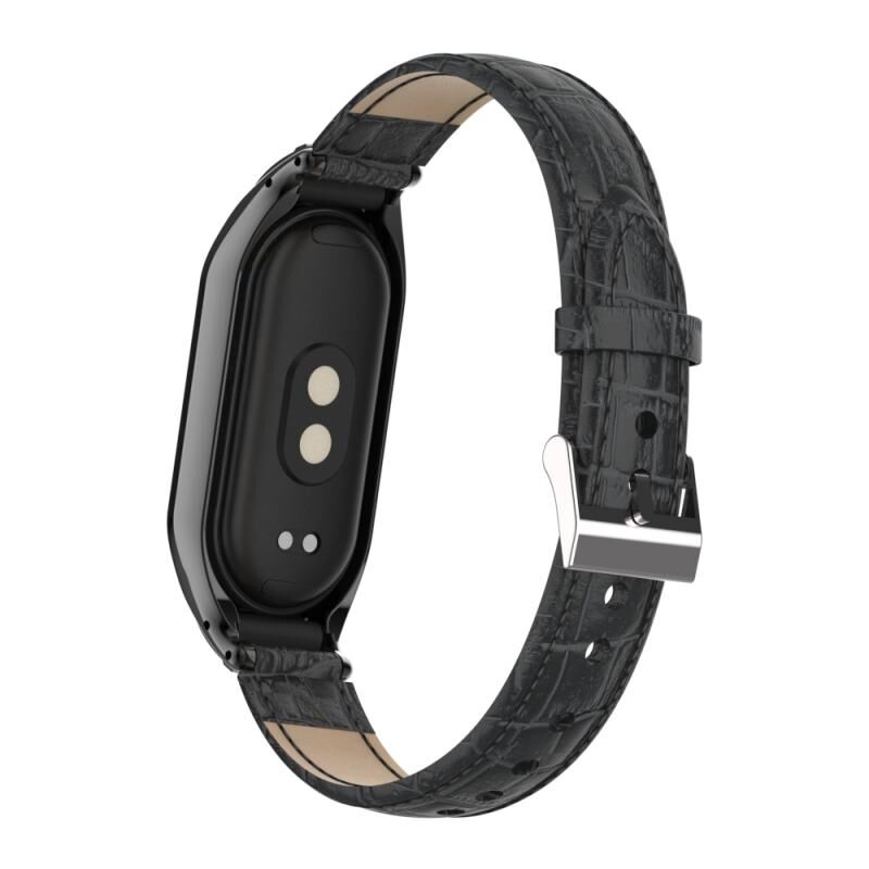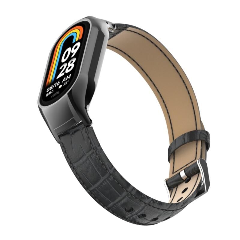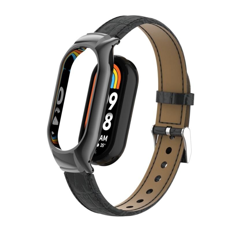 For Xiaomi Mi Band 8 Integrated Metal Case + Cocodile Texture Leather Watch Band(Black)